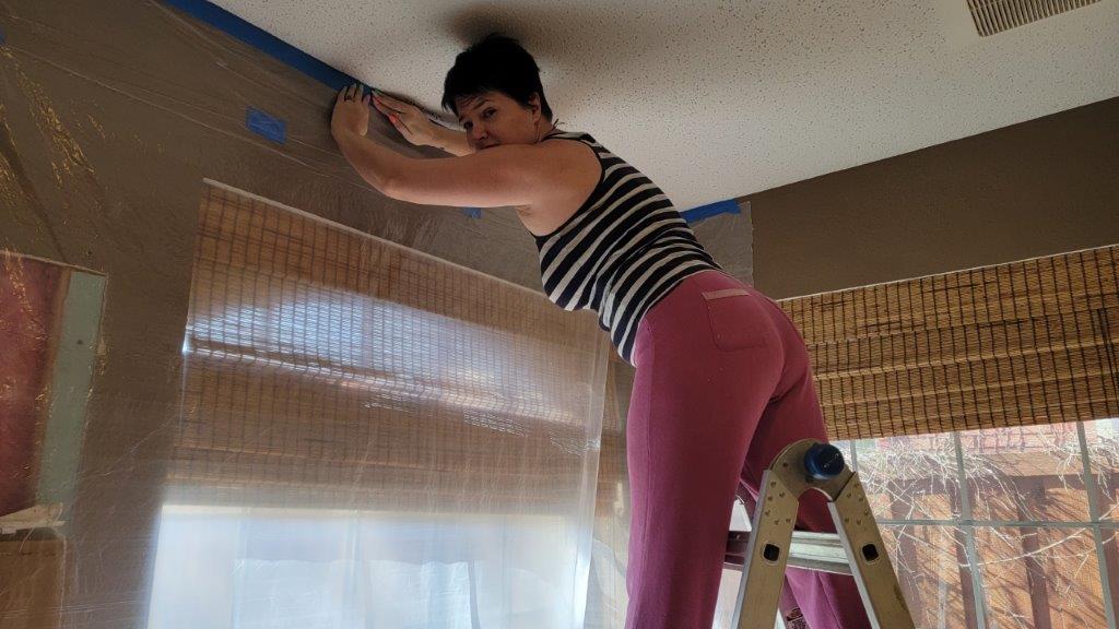 first, up goes the plastic. this was probably 90% of the work/effort and we probably overdid it but it made for a super easy and quick cleanup