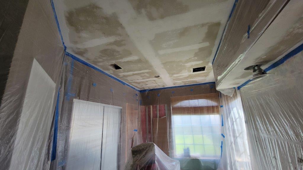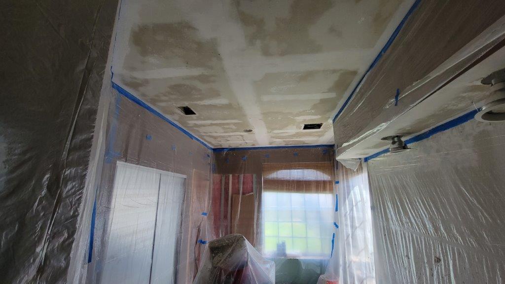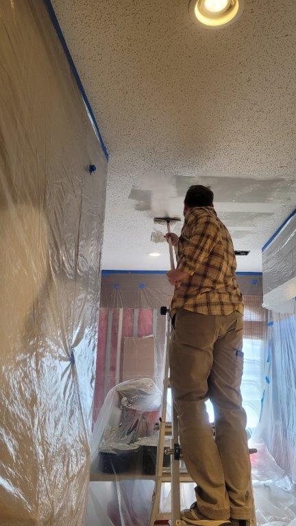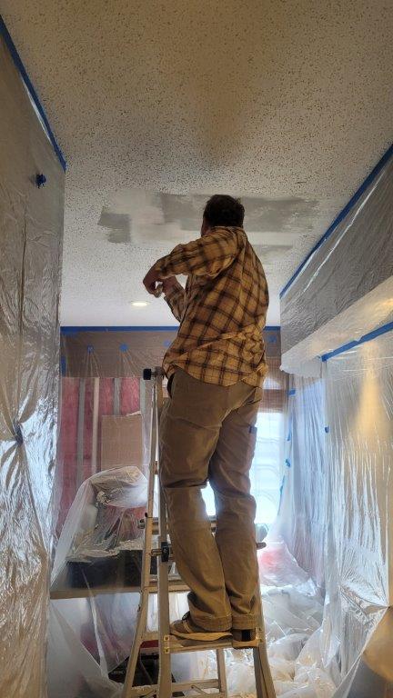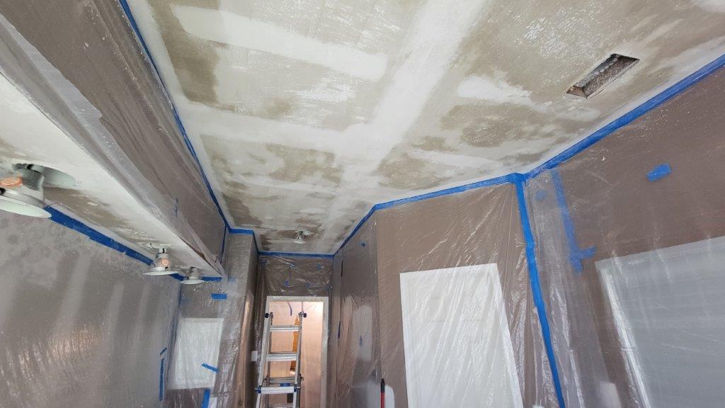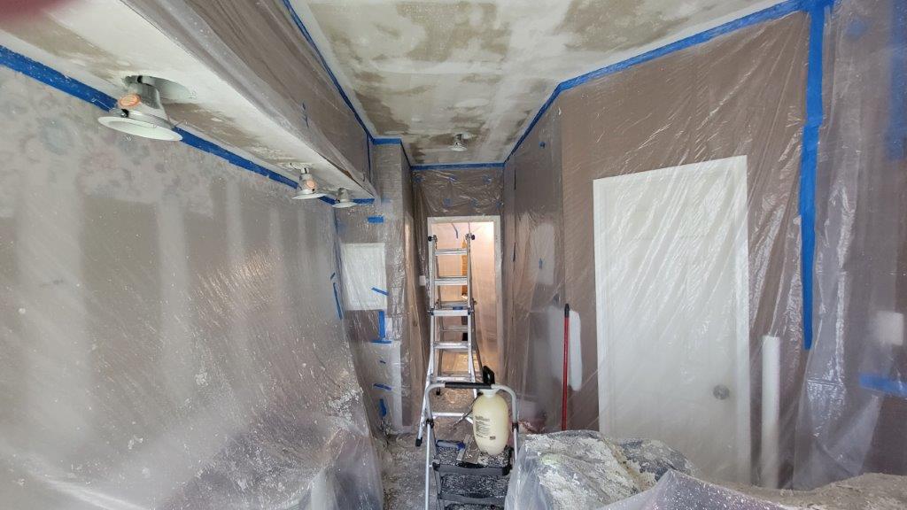 so, with everything being taken apart I jumped up on a ladder over the weekend and took down the popcorn in the bath…. because I hate it.