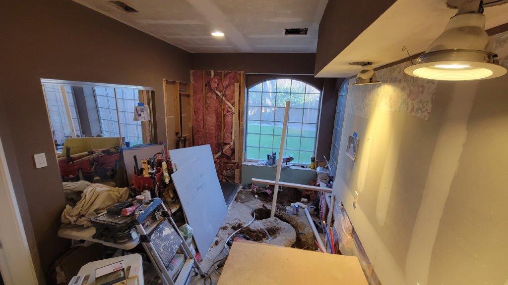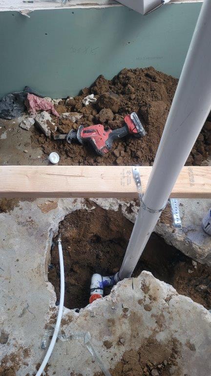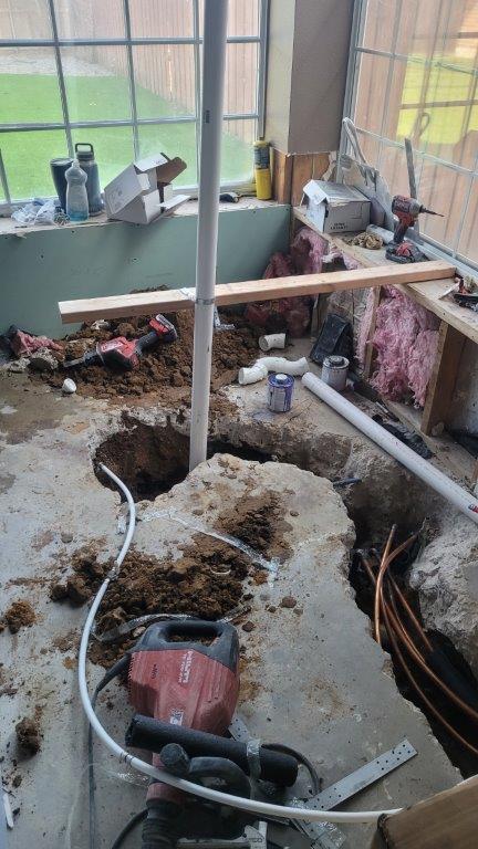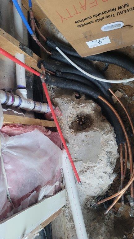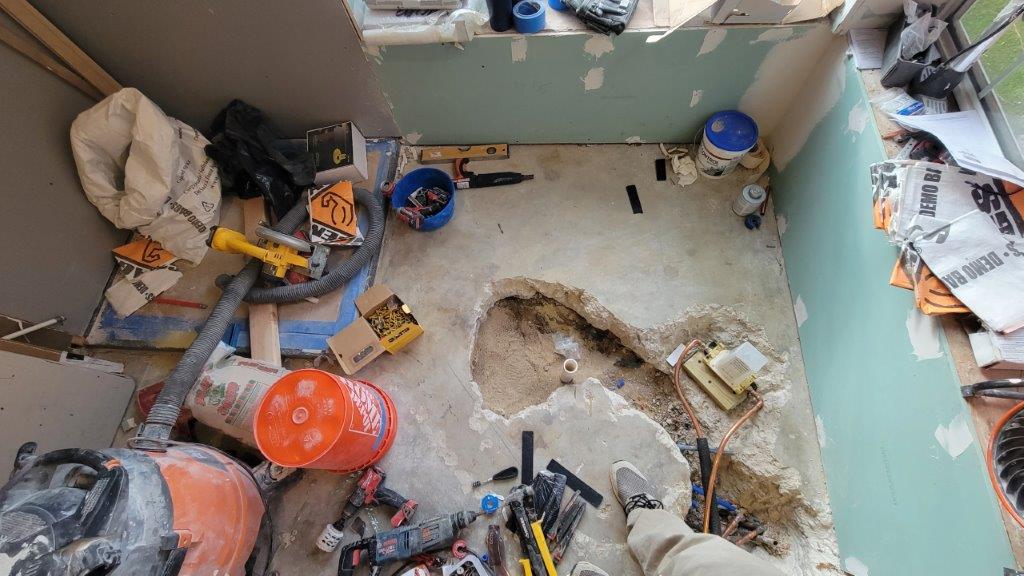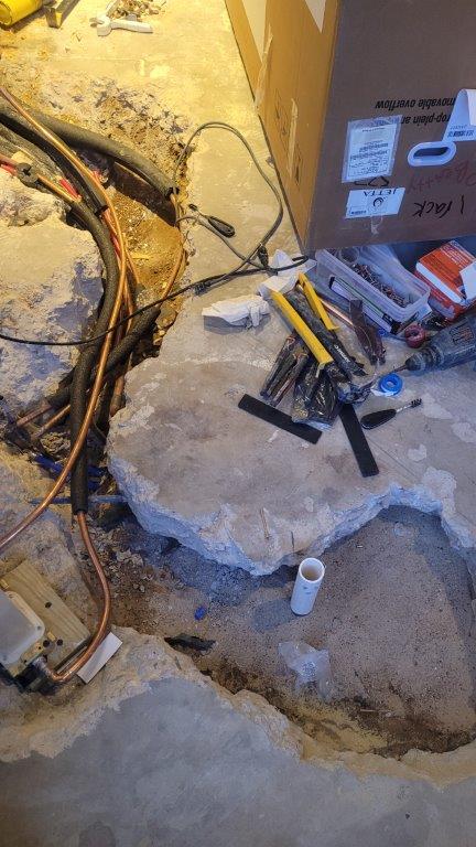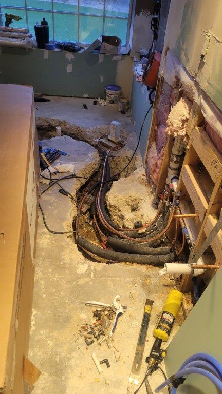 you can see how much chipping away was necessary to reroute the water lines. also, I learned something new. all the soldering that was done in or below the slab had to be silver solder to ensure that it doesn’t start to corrode. makes sense but i’d never thought about it.