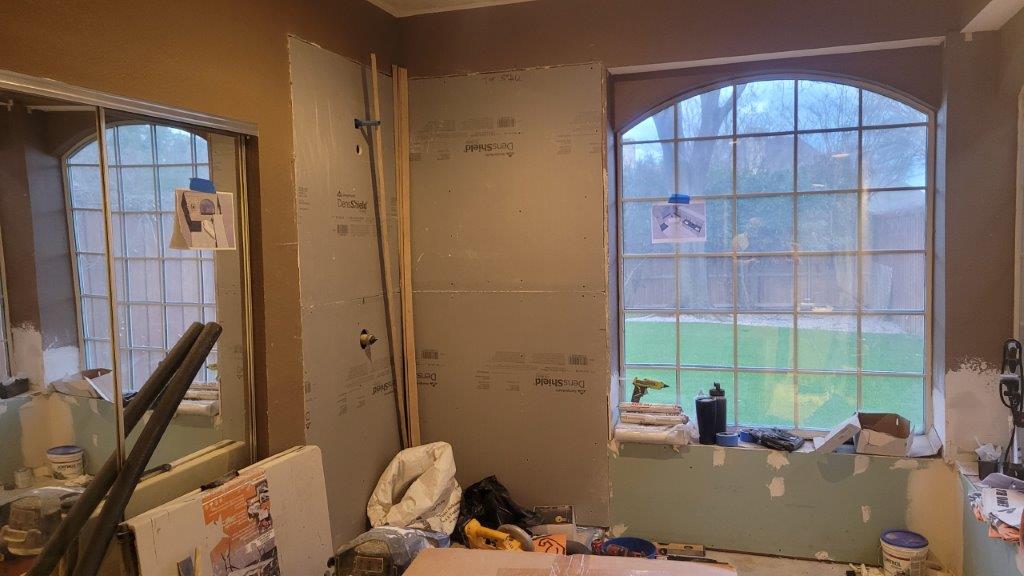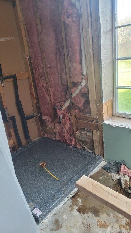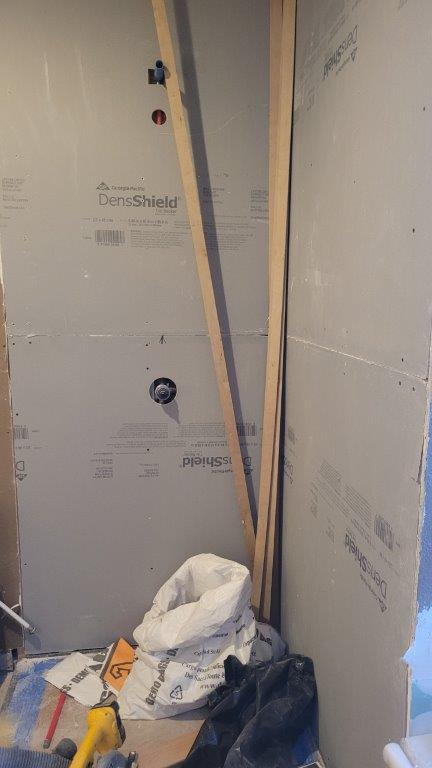 with the plumbing mostly taken care of they started on the stone shower walls. super exciting to see the natural stone go up but that’s not going to happen this week.