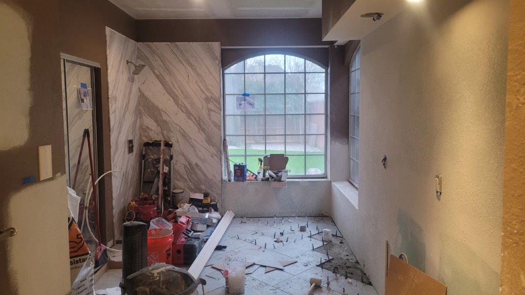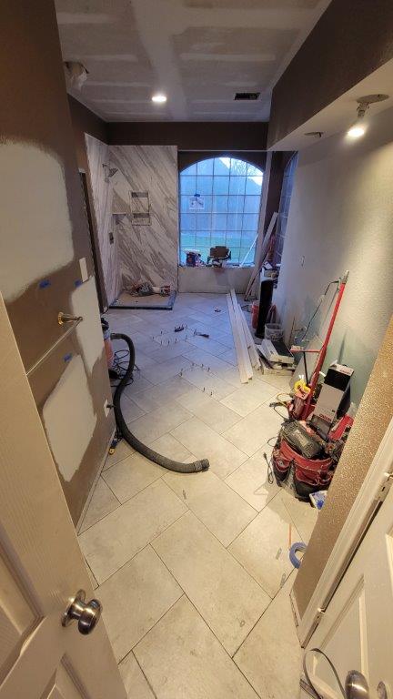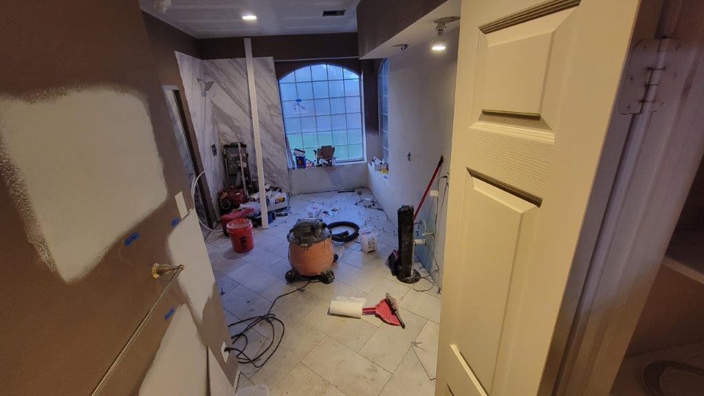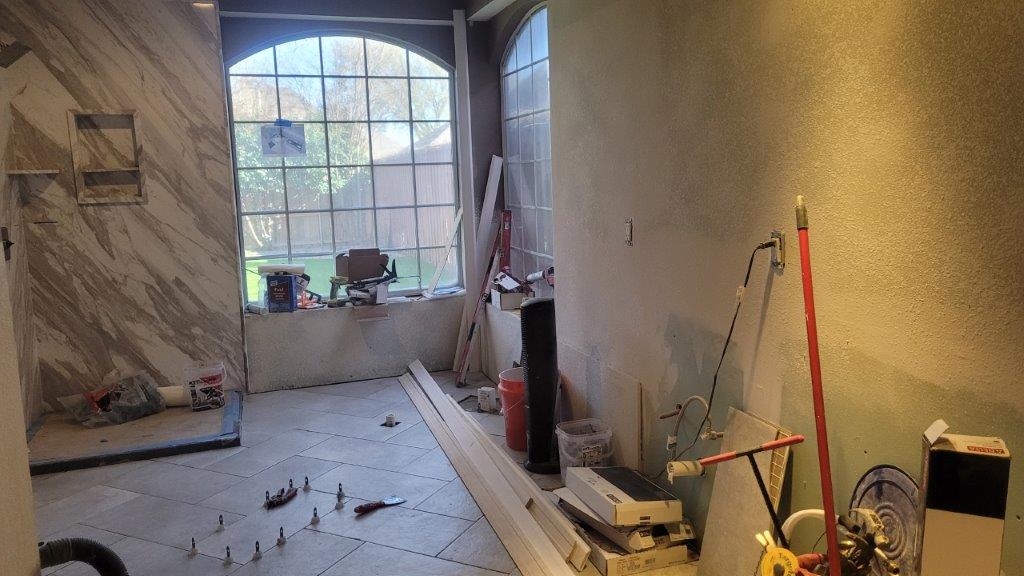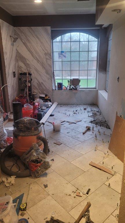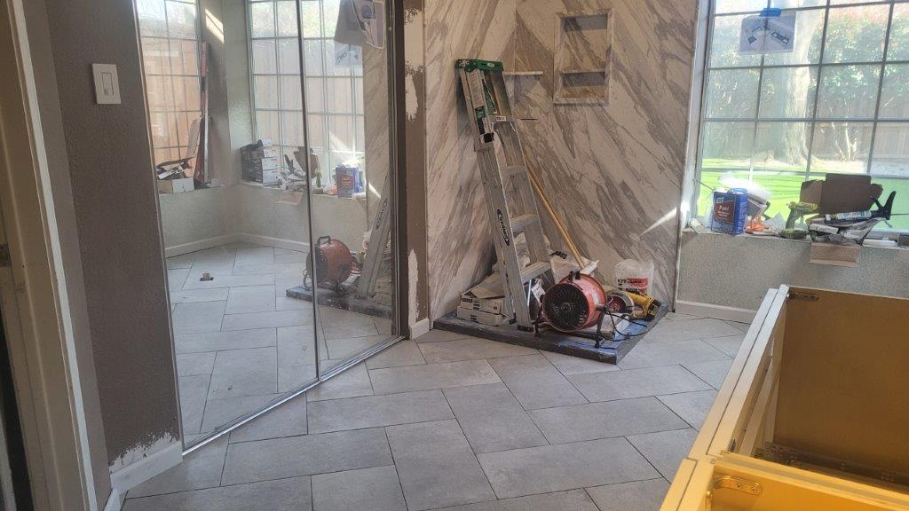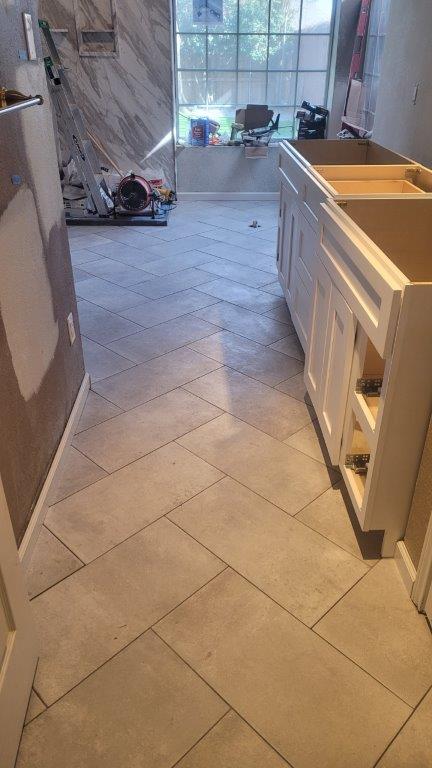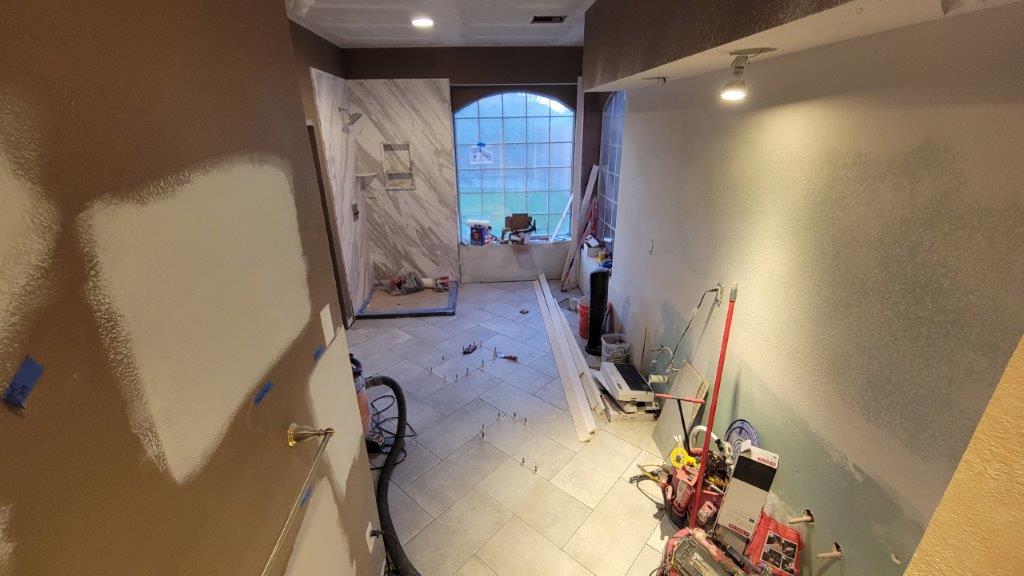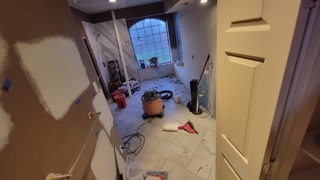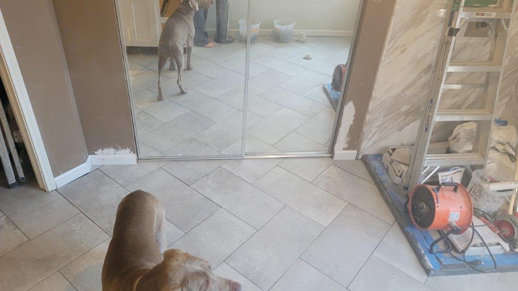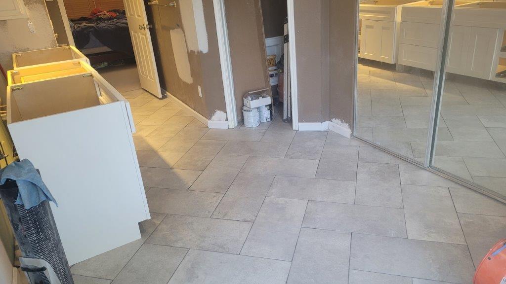 thursday there were just a few more tiles to put together and a couple they relayed before starting to cut the baseboards. baseboards didn’t go in until later but they started to get dry fit while the tile was all curing.