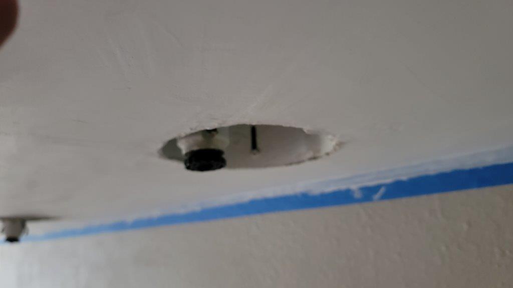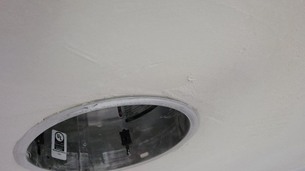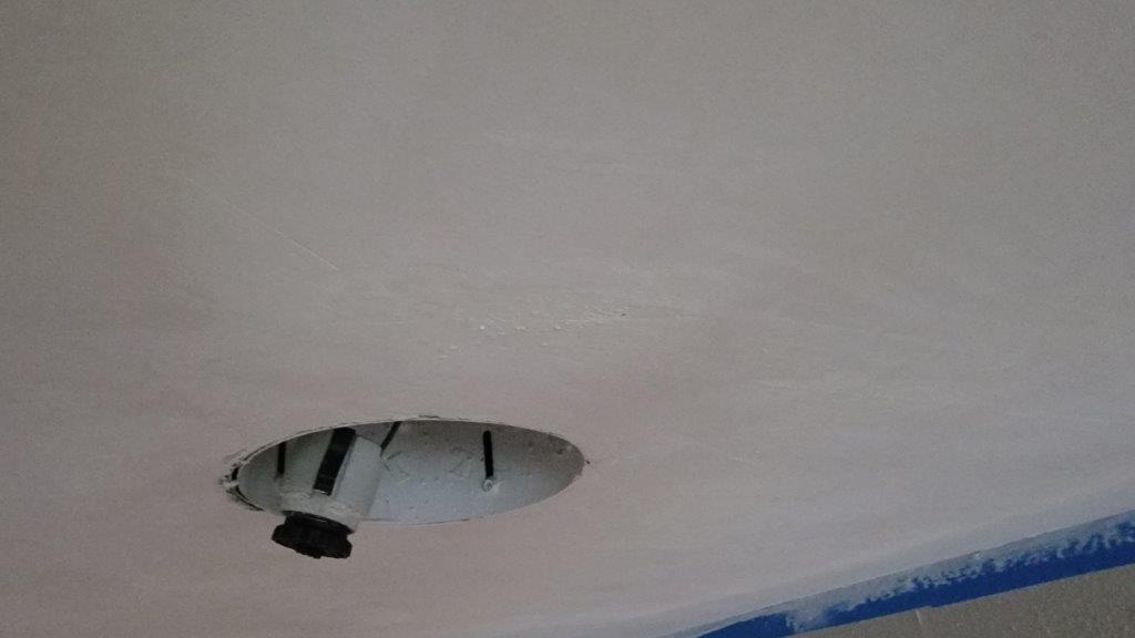 slowly but surely more is getting done. i cut some holes in the ceiling for speakers and lights and patch boys of dallas came out and floated the ceiling for us. i can’t say they did the best job in the world but probably better than what I could have done by myself.